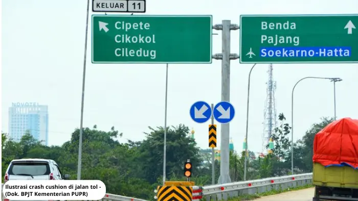 Dikutip dari akun Instagram Badan Pengatur Jalan Tol (BPJT) @pupr_bpjt, crash cushion adalah benda berwarna kuning reflektif dan hitam yang teraplikasi bersama marka jalan tol berbentuk tumpul.