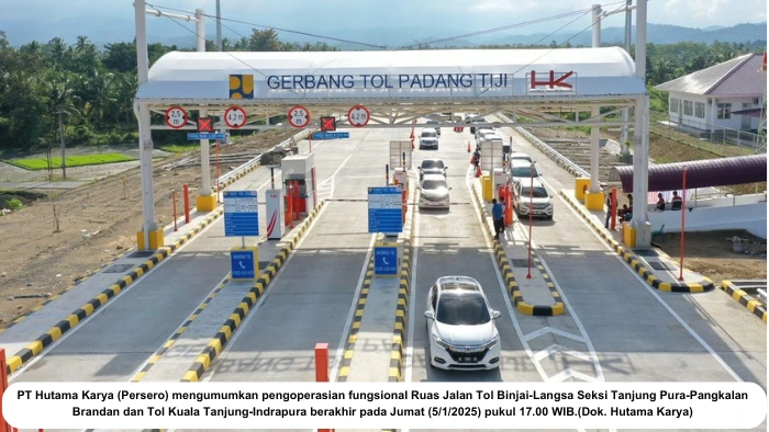 PT Hutama Karya (Persero) mengumumkan bahwa pengoperasian fungsional Ruas Jalan Tol Binjai-Langsa Seksi Tanjung Pura-Pangkalan Brandan dan Tol Kuala Tanjung-Indrapura berakhir pada Jumat (5/1/2025) pukul 17.00 WIB.
